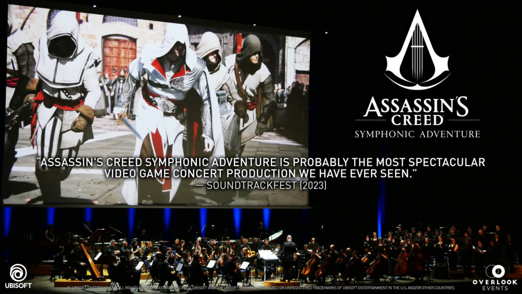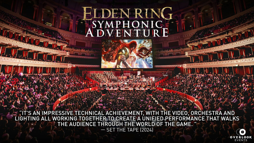 Among its most acclaimed creations is Symphonic Adventure, a distinctive live format described as a “Narrative Symphonic Experience”. Through this approach, Overlook Events produces large-scale live-to-picture concerts built around iconic intellectual properties, combining symphonic music with original video footage, advanced screen technology, immersive lighting design and carefully crafted sound effects, all structured as extended musical suites. Productions such as Dragon Ball, Saint Seiya, Assassin’s Creed and Elden Ring have established Overlook Events as a recognised reference in this field, earning international recognition and critical acclaim.